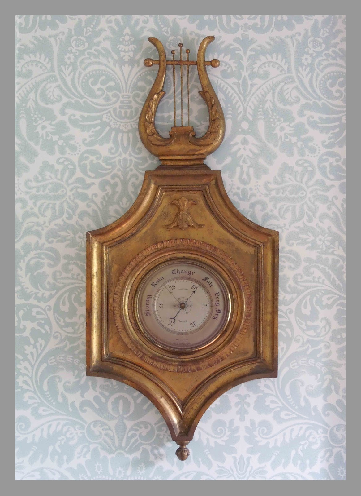 The Swedish pieces are beautiful. I think the Gustavian scheme works well when there are good gilded pieces, (such as picture frames). The gilded frame of the barometer encapsulates what I am trying to describe; the muted palette of the furniture marries very well with gilt-edged accents.