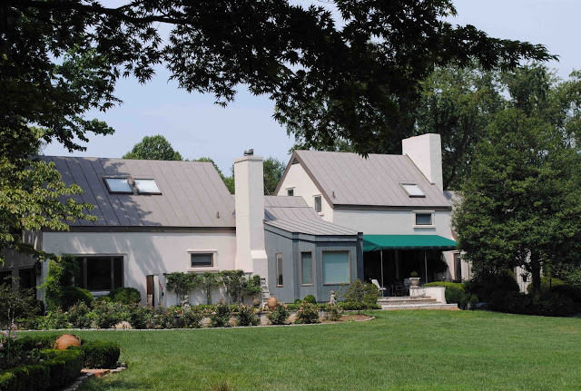 This is the story of JB and M’s love affair with their home, gardens, collections and each other. Married over 50 years, my friends JB and M live in a contemporary home they built in the 1970s. (BTW, Ali MacGraw is M’s childhood friend and a bridesmaid at the wedding. Yes, I have permission to write that 🙂 Back to the house: basically it is a series of “severe boxes” with pitched standing seam metal roofs, picture windows, French doors and 10 skylights. To me, the architecture is a bit Shaker, a bit Hugh Jacobsen, a little Belgian and a whole lotta cool!