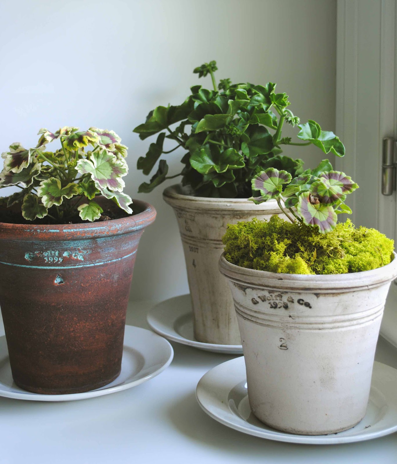 My latest plant obsession: fancy leaf geraniums. I am growing these for the foliage, and will pinch off the flowers unless they are white 🙂