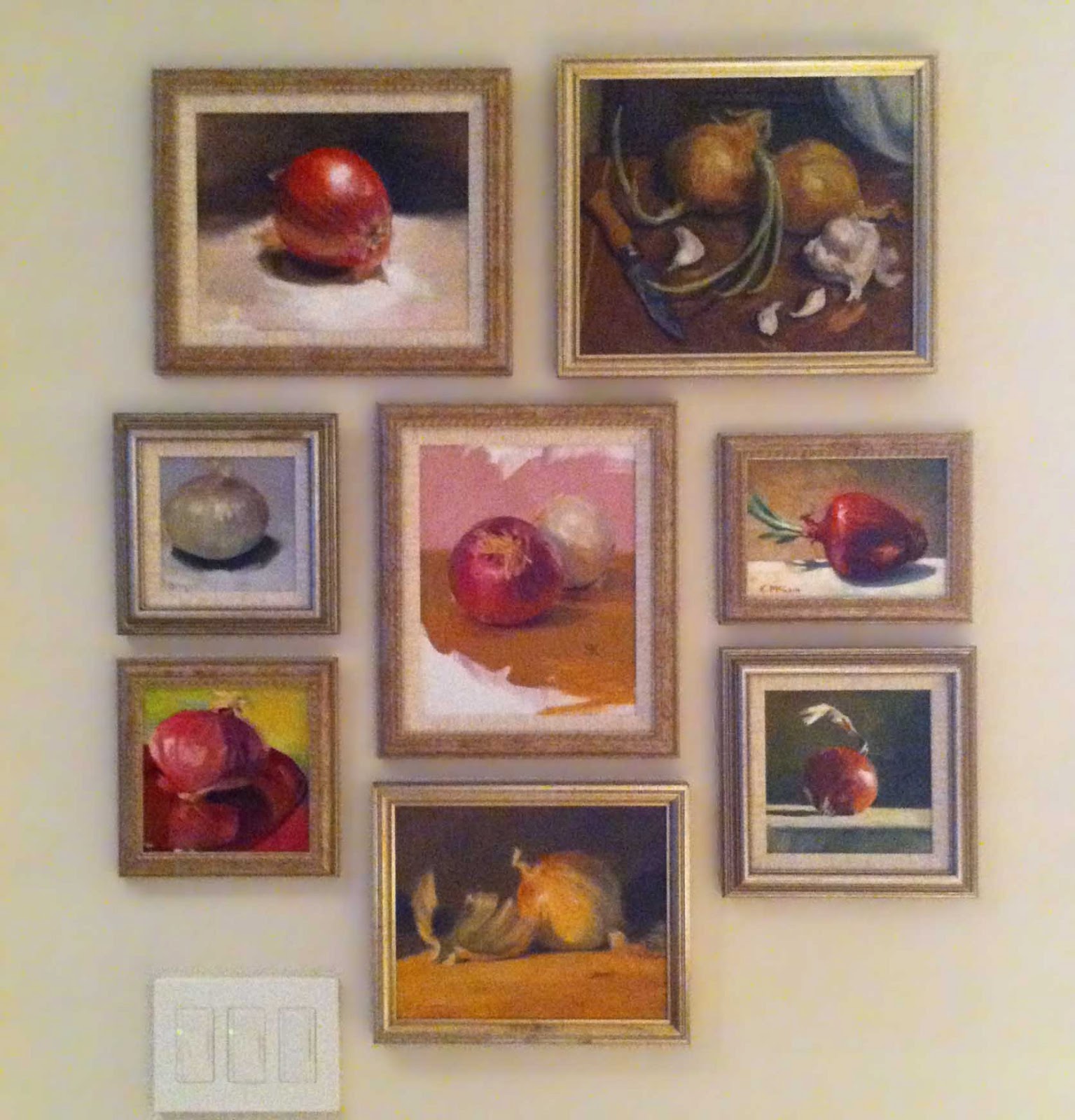 What a wonderful job you are doing to transform the place.Love the collage of onion paintings.