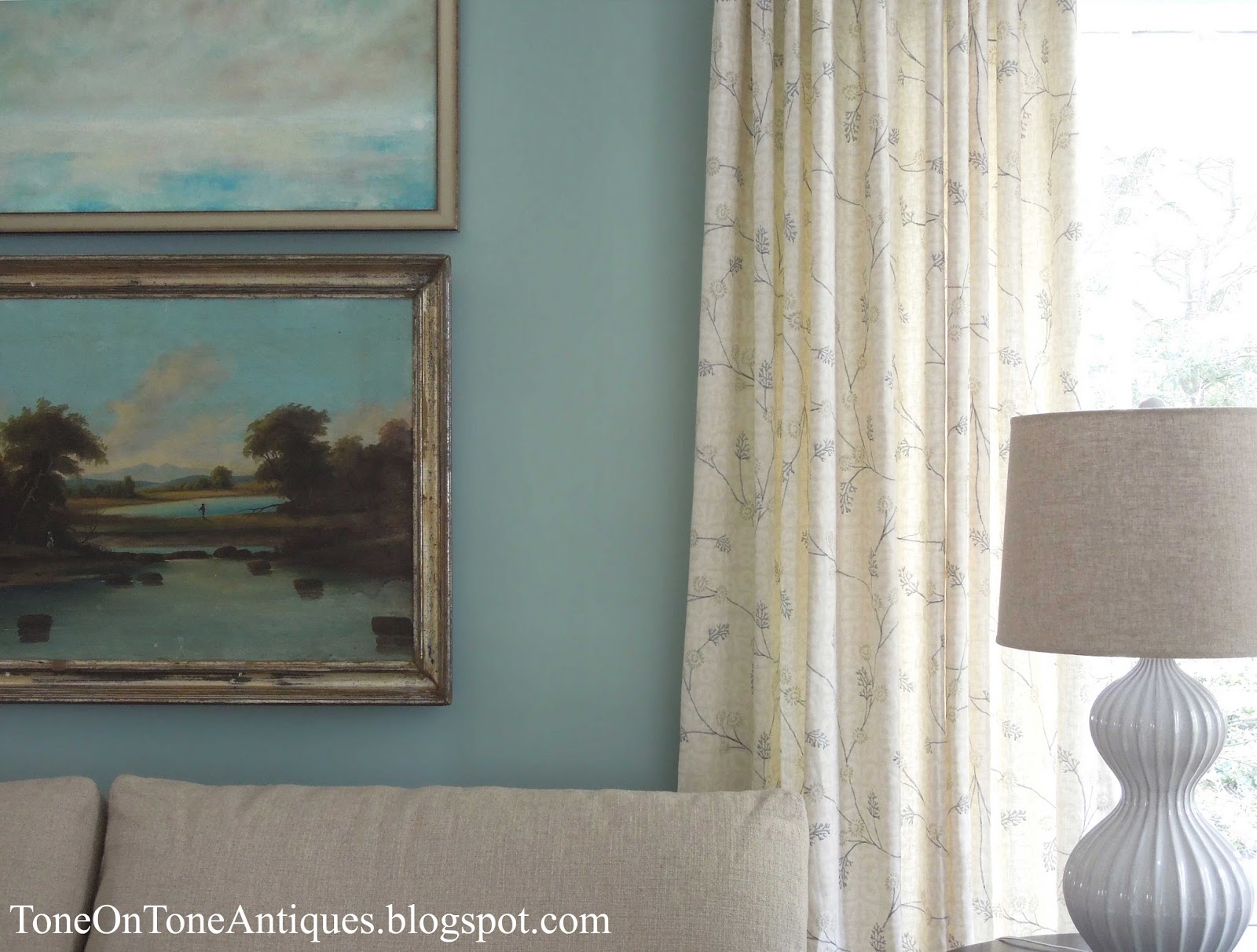 Love it all! Several have gone straight to Pinterest! I have often done drapes with a deep contrasting hem like that. LOVE the LR with the blue walls and paintings over the sofa. Love the contemporary (or is it vintage?) lamp in the mix. perfect.