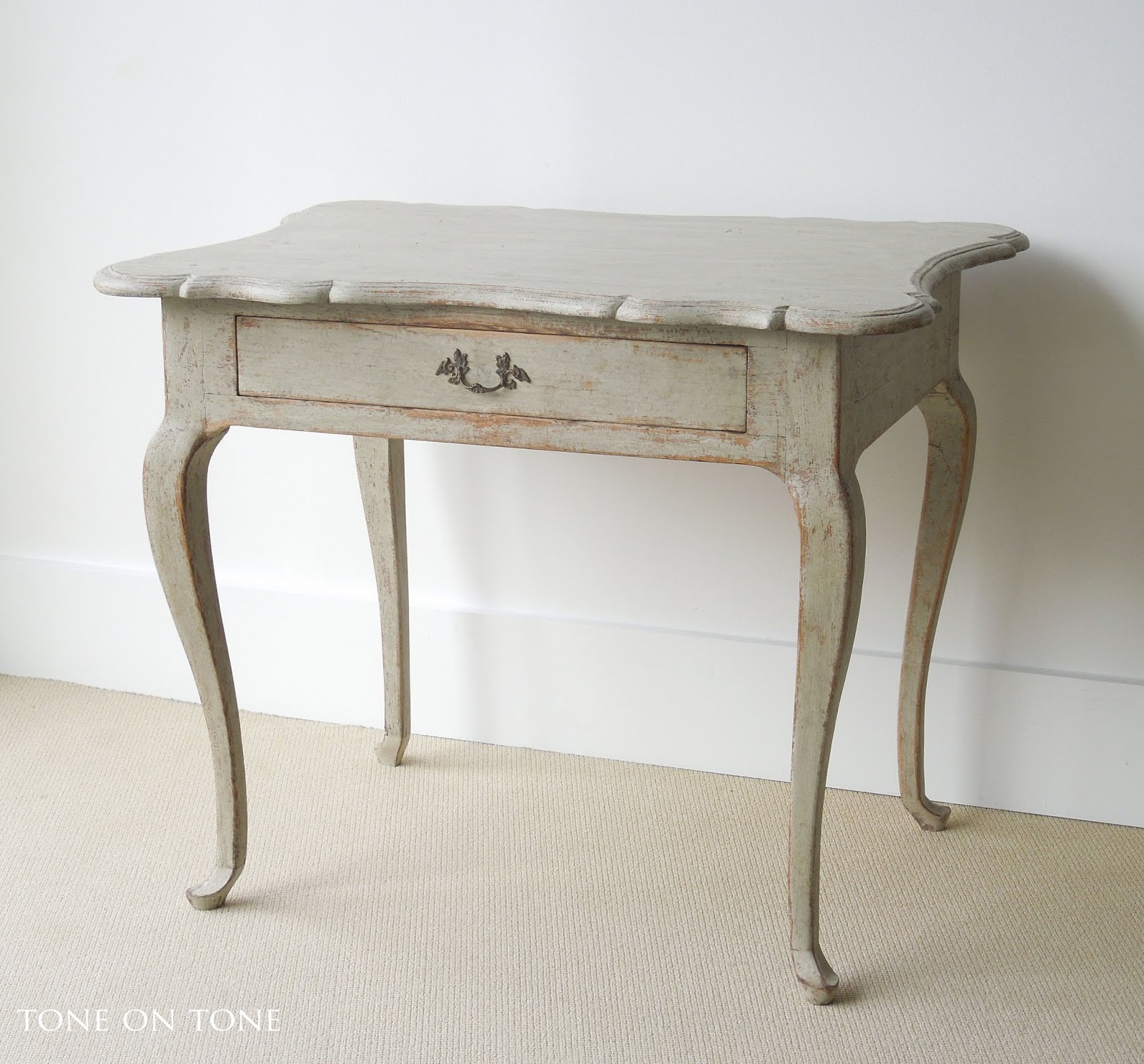 Curves in the all the right places! I love the undulating lines of this 1760s Swedish Rococo table – so sculptural! It measures 36.5″ wide x 26″ deep x 29.25″ high.
