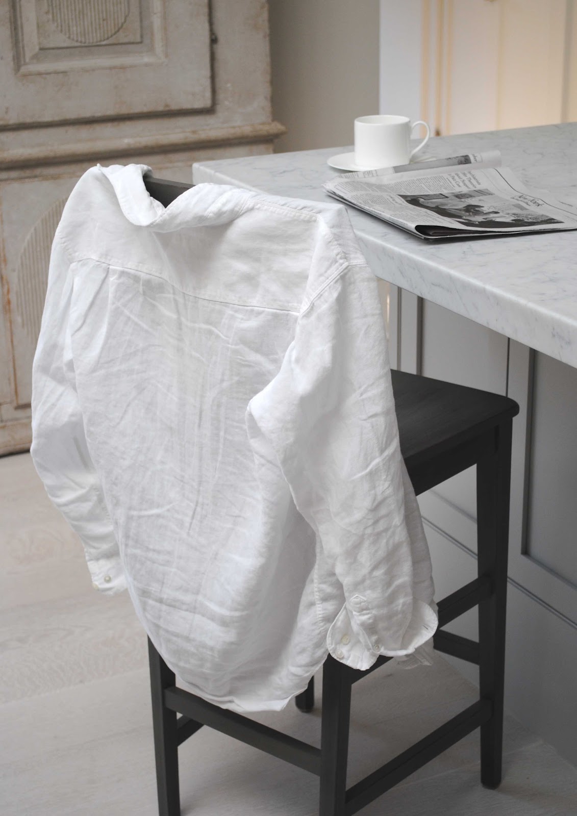 I am a linen fan too, wear it all summer, difficult to wear anything else once it gets hot. Love the image of the shirt on the kitchen stool.
