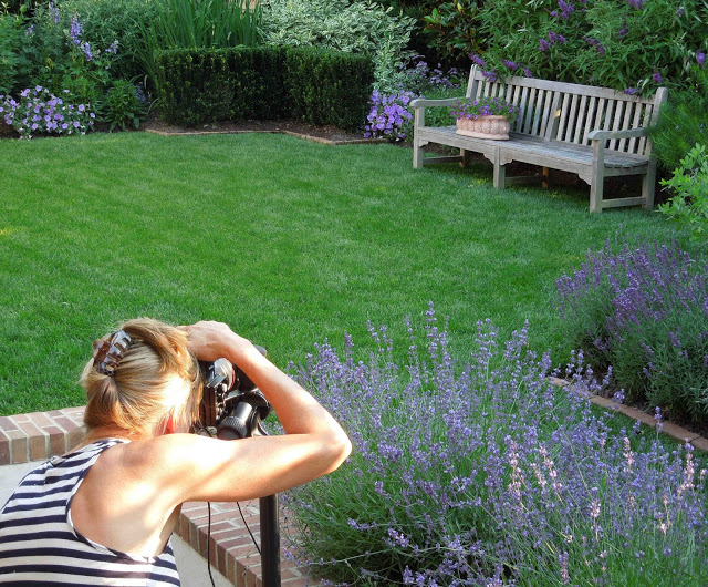 Speaking of updates, we had our second garden shoot for Southern Living Magazine. You can read about the first photo shoot here. Once again, the talented and celebrated Helen Norman came out to photograph our gardens. Here she is shooting the blue garden in the late evening light.