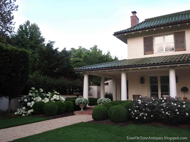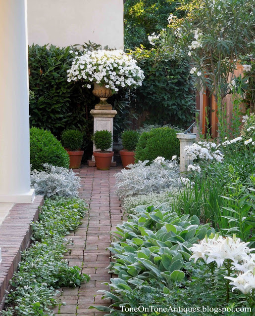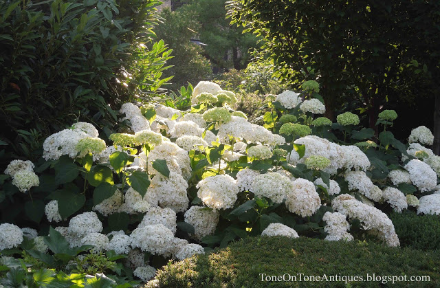 Could your Annabelle's be any more bountiful? Wow! Or your potted petunias, so perfect in their urns! The blue garden in the evening is positively dreamy. So perfect and pretty!